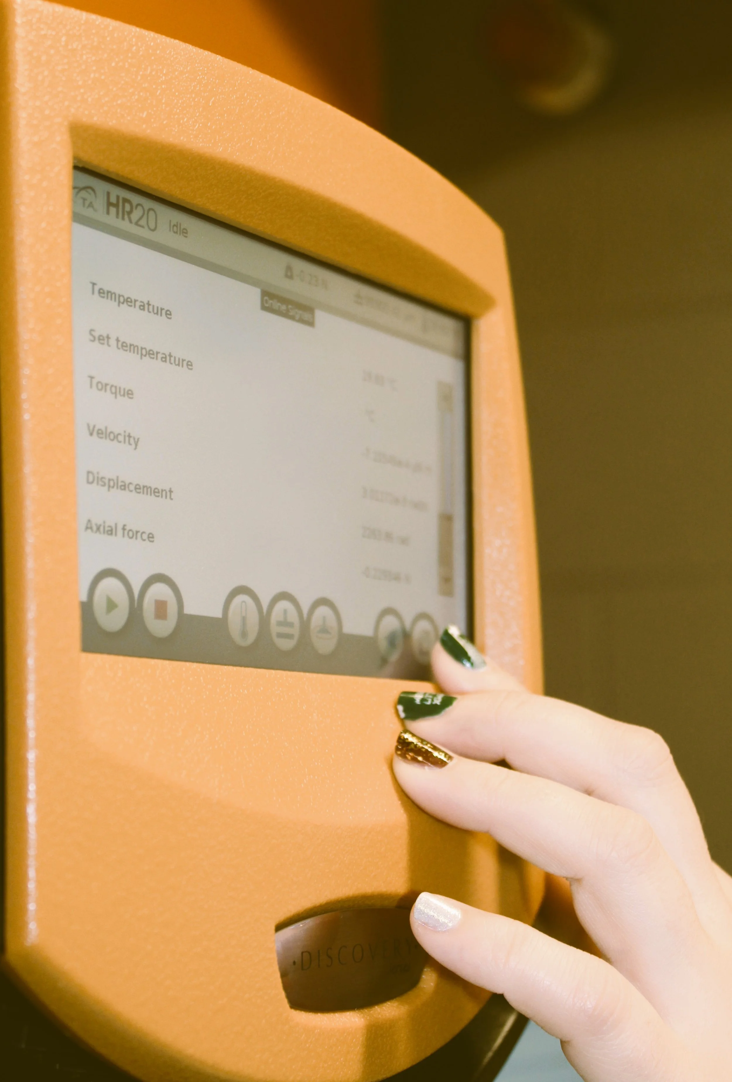 Our TR Instruments HR20 Rheometer is used to test the rheological properties of fluids used within our research experiments. The rheometer uses the latest TRIOS™ software for rheological data analysis.