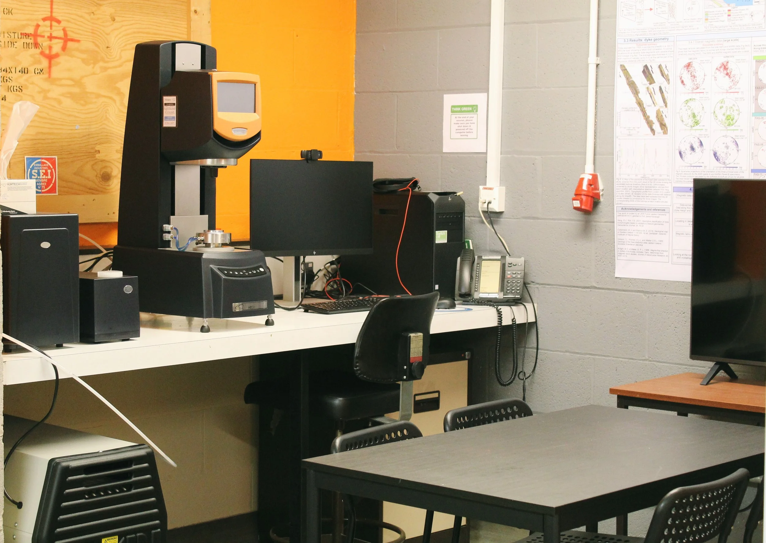 Situated on the ground floor of the Jane Herdman Building, the Volcanology Laboratory is flexible space for non-laser based analogue experiments. It is a large room with dedicated areas for experiment set ups, group meetings and desk based activities. The space can accommodate groups for laboratory workshops and outreach events.